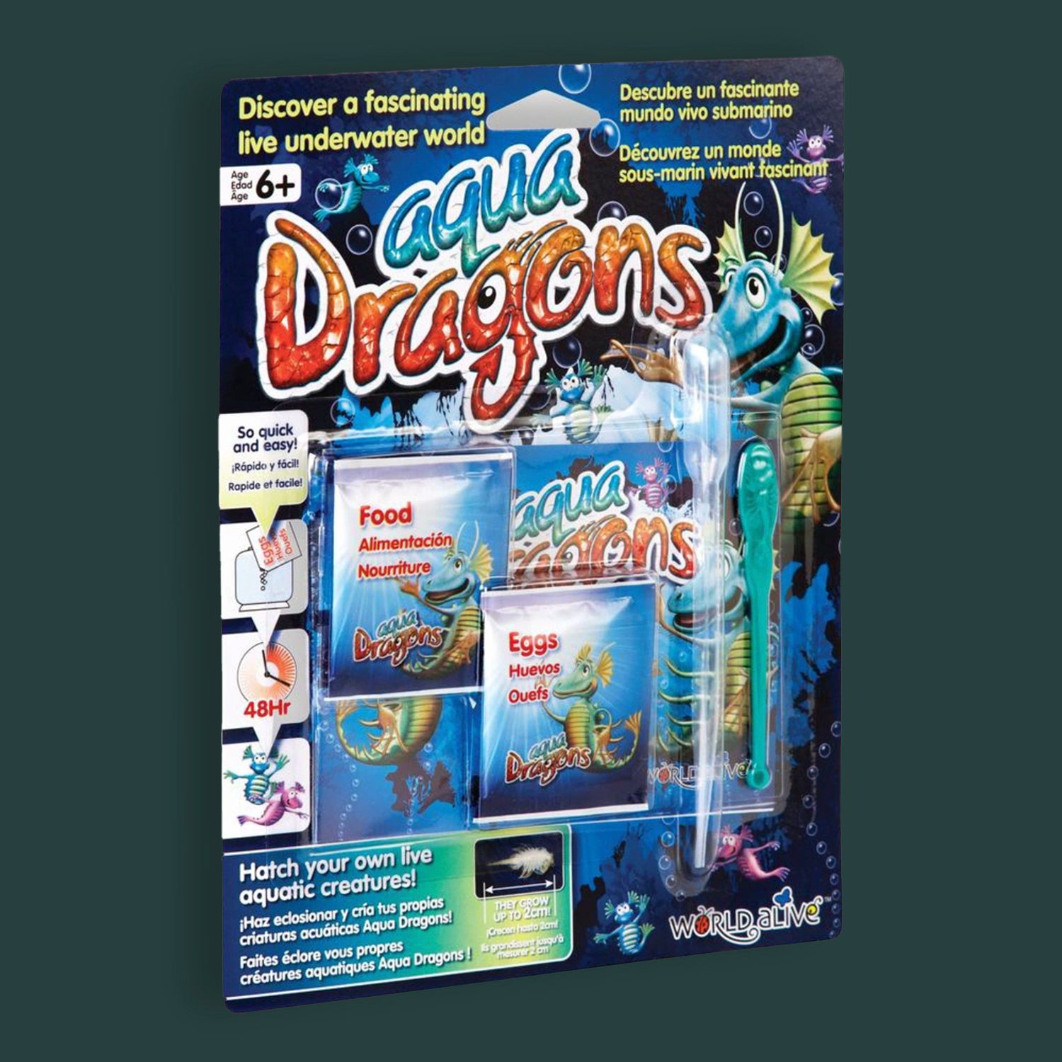 This Aqua Dragons Refill Kit includes eggs and food packets, feeding spoon, aerator, instructions and activity book. Use your own tank (400ml) to hatch & grow generations of these tiny live time travellers.
